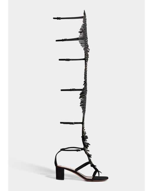 Alaia Suede Studded Feather Fringed Gladiator Sandal Size 37 | Muse Boutique