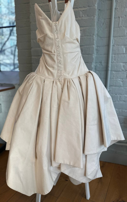 Christopher John Rogers Strapless Ruched Handkerchief Midi Dress Size 0 | Muse Boutique
